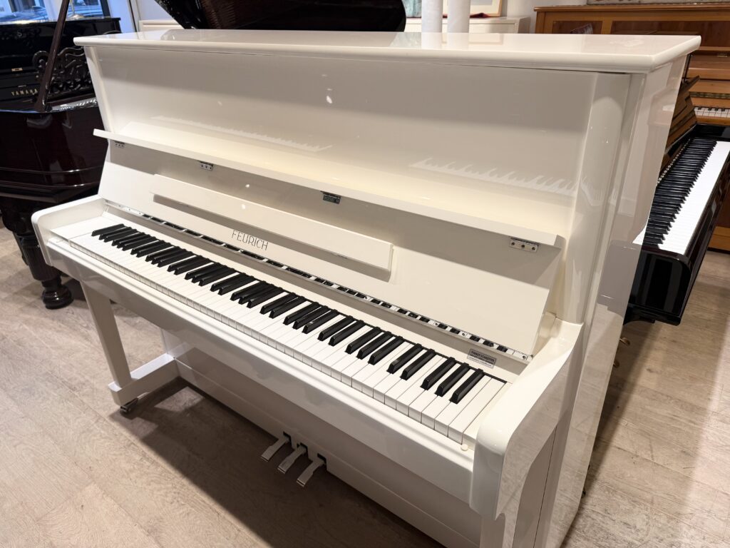 Très récent piano FEURICH de la nouvelle gamme moderne de la marque. Le best-seller du catalogue primé par de nombreux bancs d’essais. Diapason d’Or du magazine Diapason en 2011 et Pianiste Maestro en 2014. L’instrument, de fabrication asiatique, offre un rapport Qualité/Prix imbattable, à moins de 4500 €, voici un piano d’interprétation de 122 cm de hauteur très accessible qui ravira tout pianiste exigeant. Mécanique toute bois, feutre de marteaux australien, table d’harmonie massive en épicéa de grande qualité. « L’après LANGLAU » qui rappellera le beau 120P de la gamme allemande.