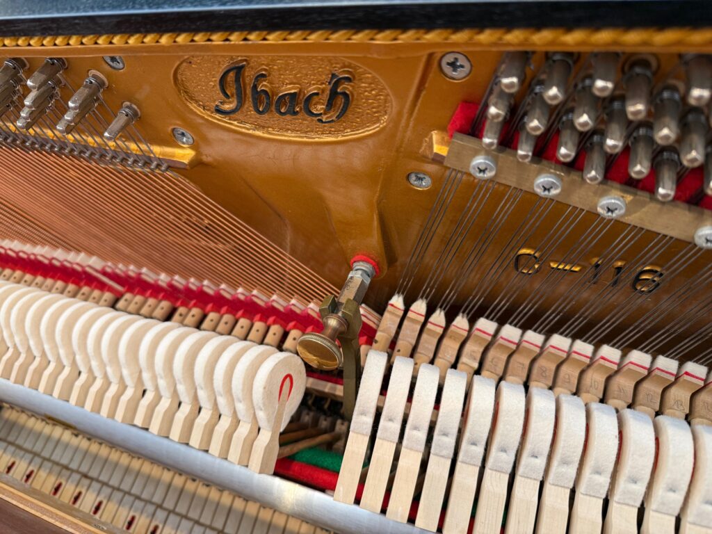 Magnifique piano IBACH C116, très rare occasion dans un état 9.9/10 ! Un piano d’artisanat allemand, une des plus belle et ancienne marque de piano. Le premier atelier date de 1794, fondé par Johannes A. IBACH, et la dernière Manufacture (malheureusement fermée en 2007) était tenue par Rolf et Christian IBACH !