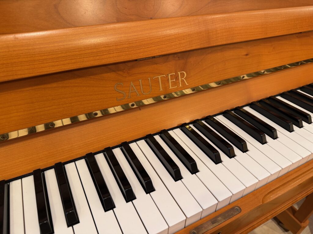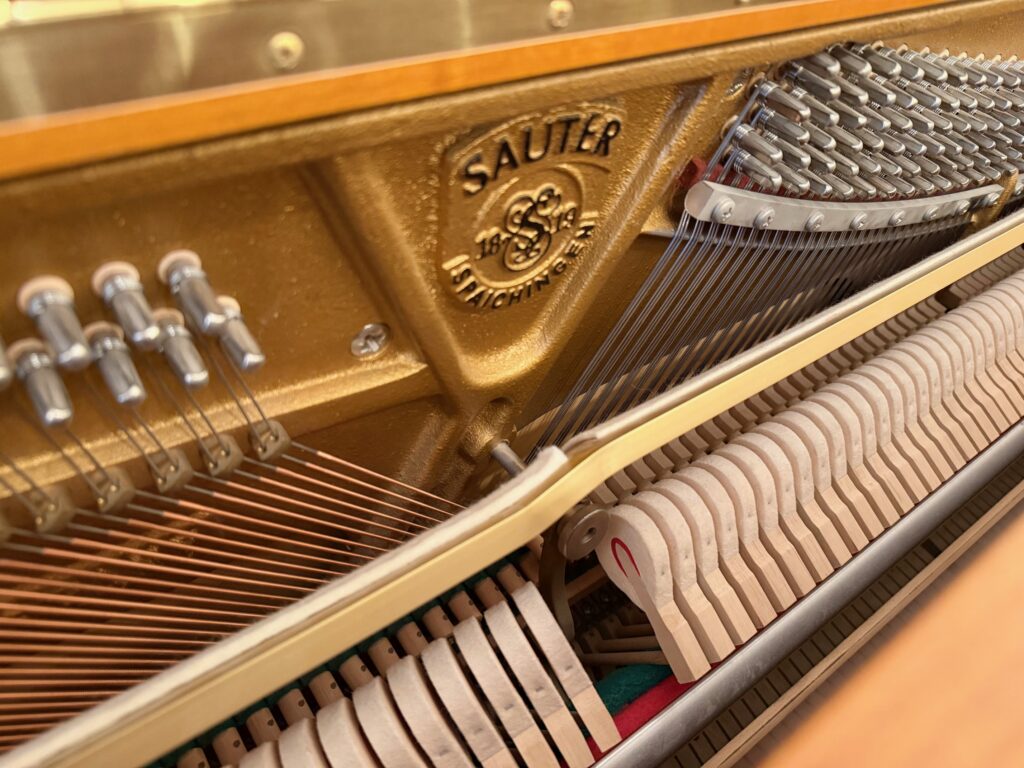 Très beau piano SAUTER d’occasion d’une finition très originale en merisier et panneaux d’if, un excellent instrument d’expression. Le modèle est prestigieux, la finition agrémenté de panneaux de marqueterie est très réussie. La mécanique R2 est d’une remarquable efficacité pour un jeu nécessitant une grande vélocité. L’effet est tout aussi formidable que le double échappement de la mécanique d’un piano à queue. Le piano au clavier est d’une souplesse incroyable et nous sommes éblouis par le spectre sonore car, ici, tout est possible : d’un pianissimo savant au plus généreux forte !