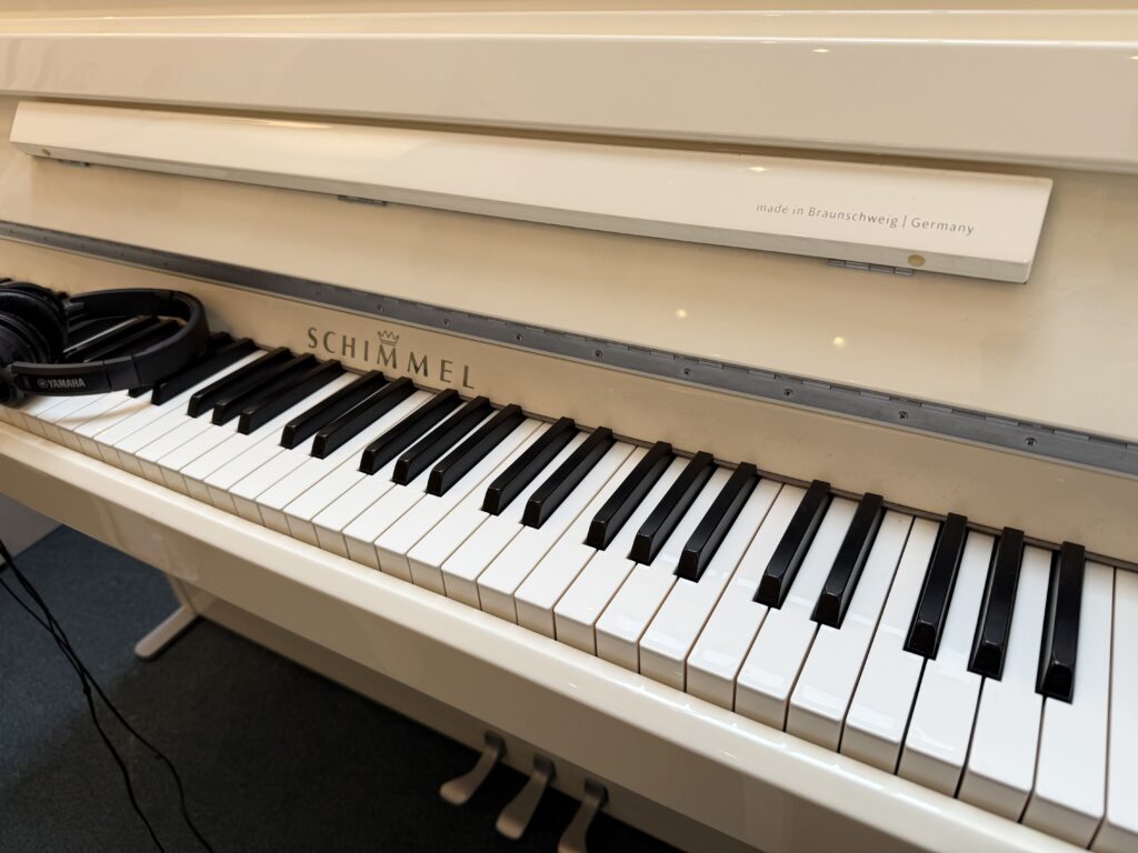 Juste arrivé dans notre exposition, ce très original piano SCHIMMEL Silent TWINTONE d’un design rappelant le C.BECHSTEIN Millenium R2. Piano doté (montage usine) de l’excellent SILENT YAMAHA SG2. Un piano de « designer » exceptionnel, tant sur les plans sonores que sur cette présentation luxueuse en Blanc laqué, finition argent. L’instrument offre une sonorité romantique et dynamique et le clavier est d’une indicible précision. Un piano joyau à moins de 10000 € (Prix neuf 20000 € environ).