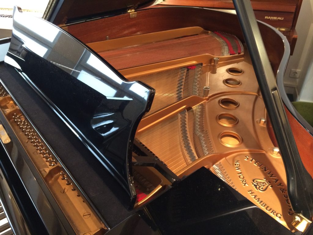 Le premier de la gamme des pianos à queue Steinway. Un piano bijou acheté neuf en 1988 à Paris. Fabrication Hambourg. Nous sommes si séduit par le raffinement de ce bel instrument ! De plus, sa taille d’1m55 de longueur le rend très logeable. Le piano est délicat, tout est beau dans sa conception et sa fabrication. Au clavier, la puissance nous surprend pour sa taille, les basses sont pleines, le medium est rond et généreux, les aigus lumineux et incisifs.