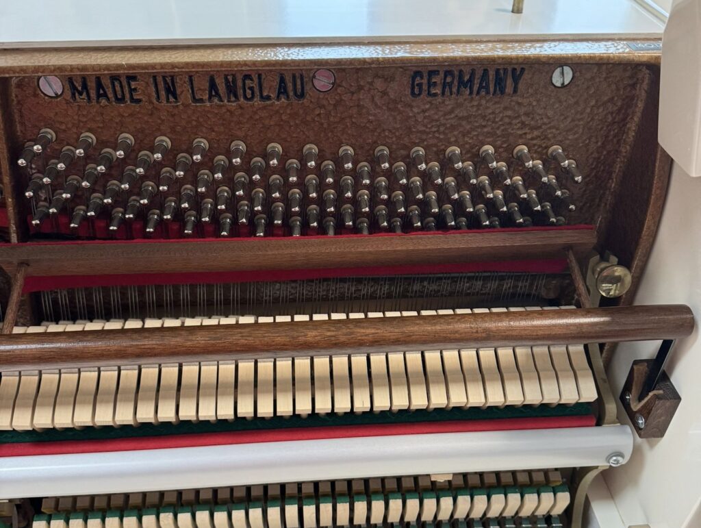 Le + : Finition rare LAQUÉ BLANC pour ce piano "Made in Langlau", piano d'occasion état neuf